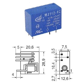 Relè minianuta 12 V 1 Scambio. Terminali a Circuito Stampato. Portata 5 A.