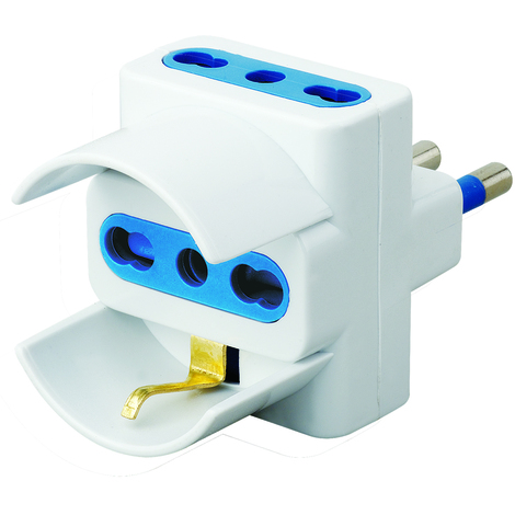 Adattatore da 3 prese 10A/16A: 1 schuko + 2 bipasso 10/16A