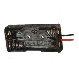 Portabatterie per 2 pile tipo AAA Ministilo. Lunghezza fili: 150 mm. Corpo in polistirolo.