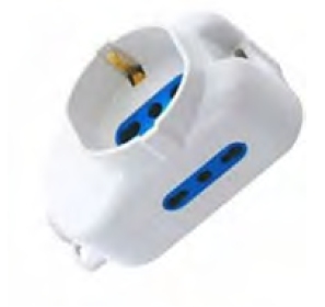 Presa multipla bianca con presa schuko bivalente 1 posto + 2 prese laterali.