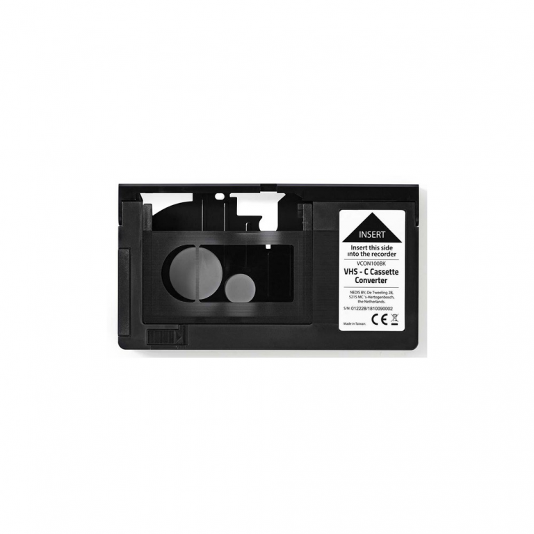 Adattatore per la registrazione o la visione di un nastro vhs-c con un videoregistratore vhs standard. è necessaria una batteria stilo per l'apertura automatica dello sportello dell'adattatore per caricare o rimuovere un nastro.