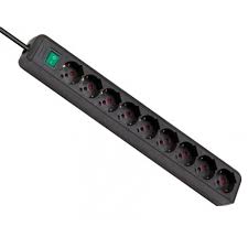 Multipresa eco line 9 prese universali ed interruttore, cavo 1,4m 3x1,0 nera.