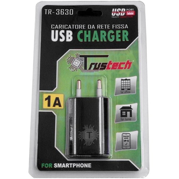 CARICATORE DA RETE FISSA USB 5V 1A, TRUSTECH
