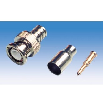 Spina BNC a crimpare per RG 58 volante con guidacavo. Corpo in ottone nichelato. Per cavo RG 58 ( diametro 5 mm. ).