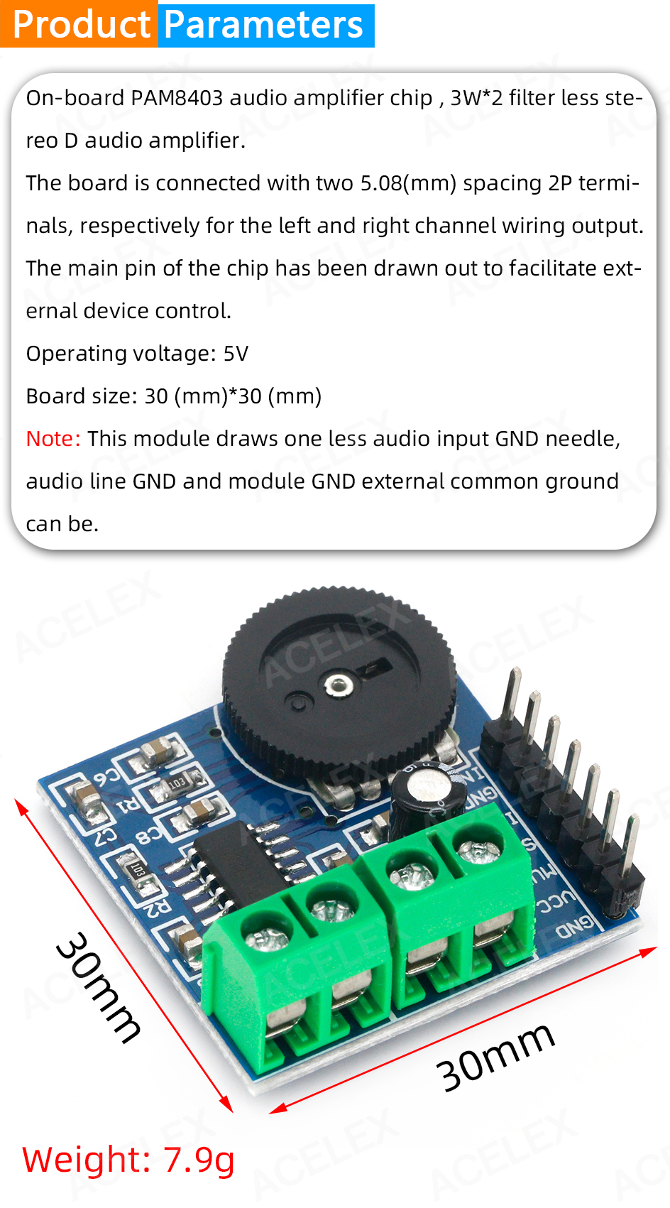 MODULO AMPLIFICATORE DIGITALE STEREO 2X3W PAM8403 5V