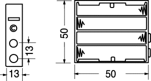 CORPO:polipropileneCONNESS.:a bottoneMEDIANTE:4/11012 - 4/11013PER BATTER.NI-MH:30/284PILE ALCALINE:30/24000 - 30/25000CONNESS.:a bottone
