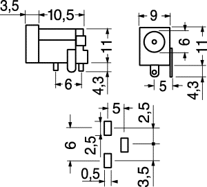 SPINA COASSIALE DI ALIMENTAZIONE DA PANNELLO DA PCB DIAMETRO INT. 2,5mm