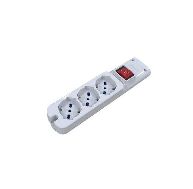 Multipresa 3 posti bipasso/Schuko senza cavoSpina 16AMAX 3500WColore: BIANCOInterruttore luminoso bipolare