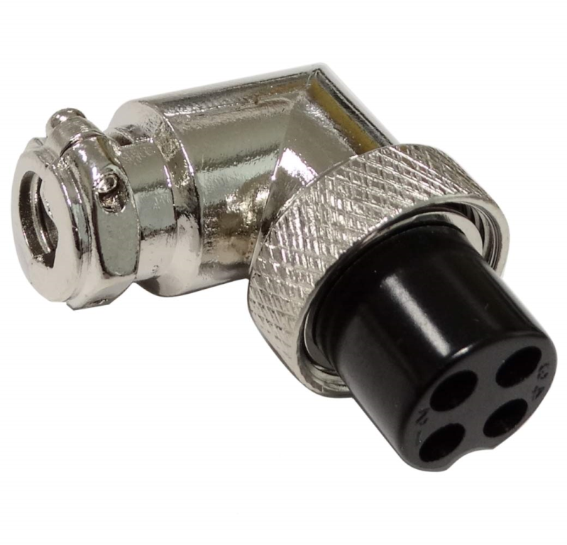 CONNETTORE CIRCOLARE VOLANTE SCHERMATO 4 POLI FEMMINA CON GHIERA AD AVVITARE 90°