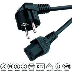 CAVO ALIMENTAZIONE SPINA SCHUKO 90°/ PRESA VDE 2MT 3X0,75