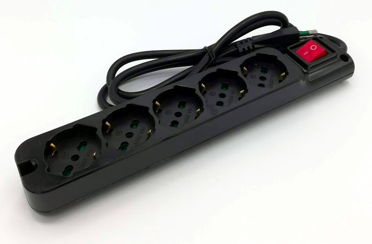 MULTIPRESA 5 PRESE BIPASSO / SCHUKO NERA INTERR LUMINOSO CAVO 3X1.5MM - 1,5MT