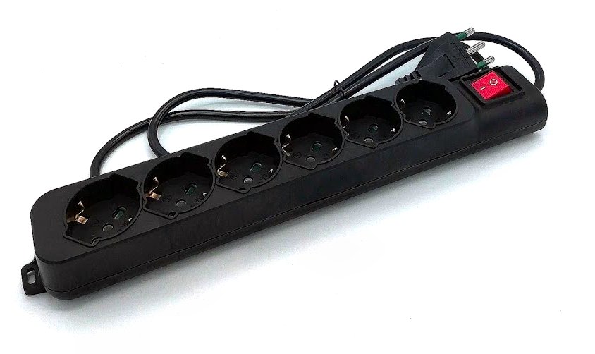 CIABATTA MULTIPRESA NERA 6 POSTI CON INTERRUTTORE SCHUKO+BIPASSO CAVO 1,5MT MAX 3500W SPINA ITALIANA 16A