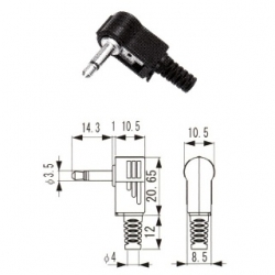 Spina Jack 3,5 mm. a 90° Mono volante. Miniatura 2 conduttori. Terminali a saldare.