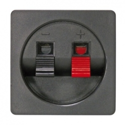 Morsettiera 2 poli quadrata per casse acustiche. Morsettiera ad incasso con pulsante a molla per cavo fino a 4 mm. Materiale in ABS. Dimensione 57 x 57 mm. Dimensione d'incasso diametro 45 mm. Profondità circa 23 mm.