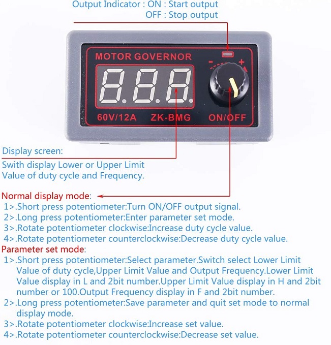 PWM MOTOR SPEED CONTROLLER MODULE DIMMER con SWITCH e DISPLAY 9-60VDC 12A