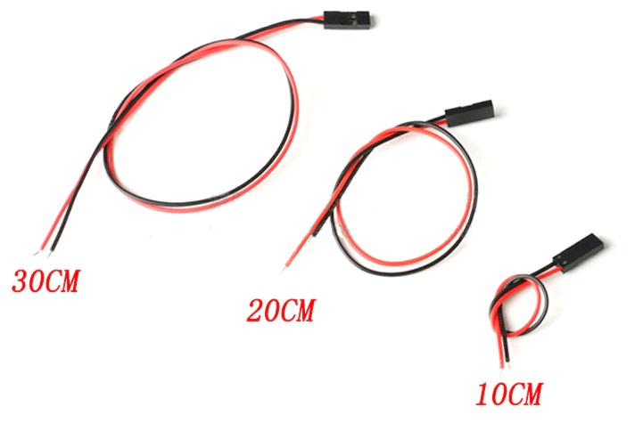 CONNETTORE DUPONT 2P F con cavetto R/N 26AWG 0,254 mmConnettore DUPONT a 2 pin distanza tra i pin 2,54 mm (interasse)lunghezza cavo: 300 mmpeso: 25g