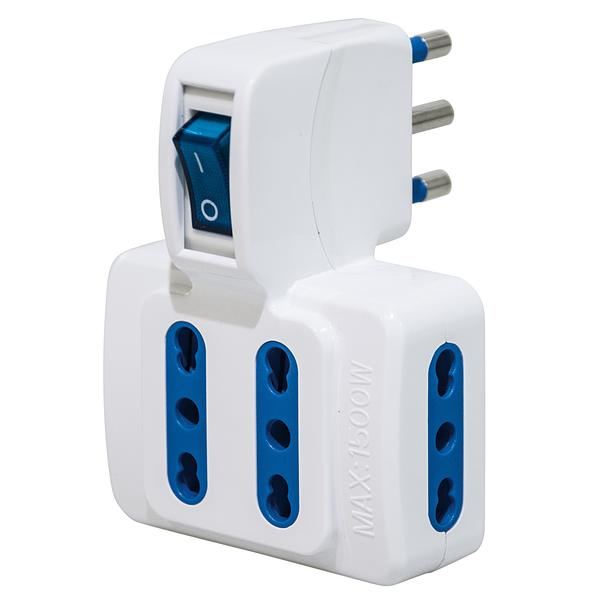 QUADRUPLA CON SPINA 16A SALVASPAZIO Verticale 4 PRESE BIPASSO, CON INTERRUTTORE, Bianca