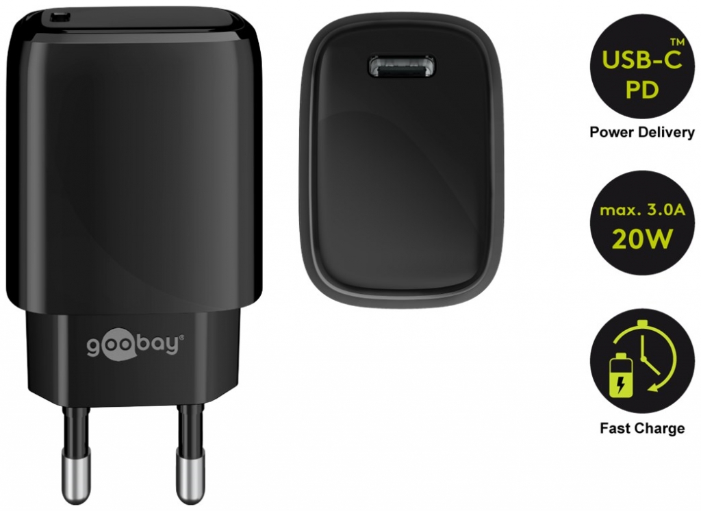 Caricabatterie rapido USB-C™ PD (Power Delivery) (20W) nero 3A