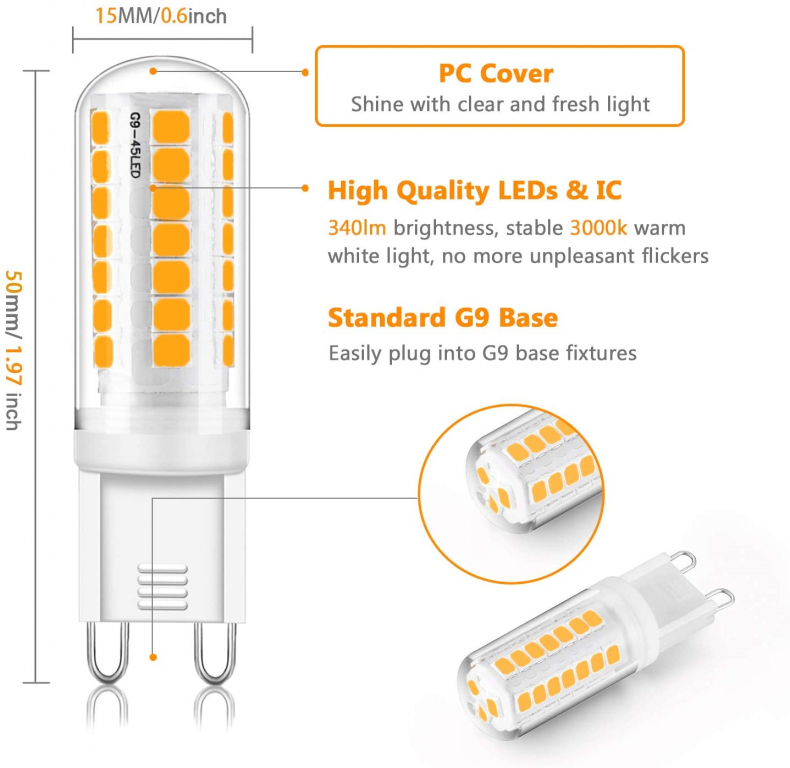 LAMPADA LED G9, Ceramic PC, 4W, FA300°, 3000K, 220Va LM500, 15X50mm