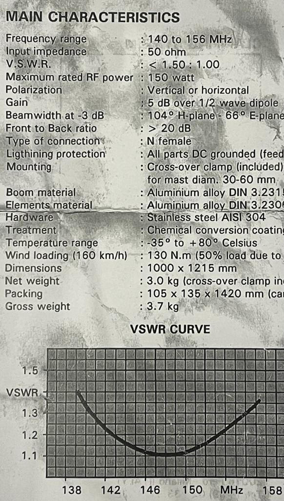 ANTENNA RAC YAGI 140-156MHZ 150W 5DB OVER 1/2