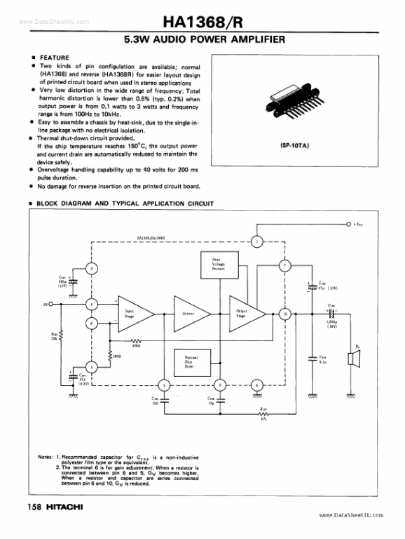 HA1368 INTEGRATO 5,3W Audio Power Amplifier HITACHI