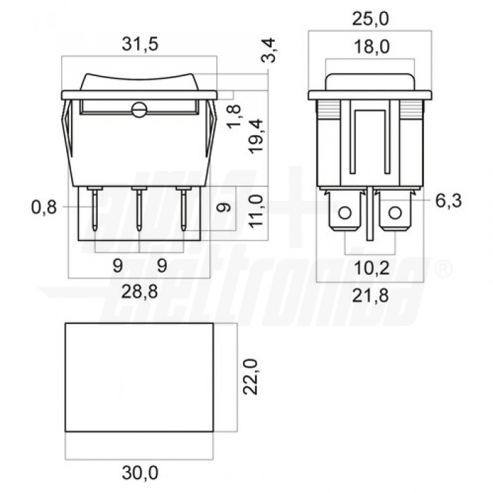 PULSANTE DEVIATORE A BILANCIERE (ON)/OFF/(ON) 15A 250VAC