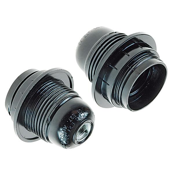 PORTALAMPADA E27 IN PLASTICA CON UNA GHIERA FILETTATURA IN METALLO, NERO