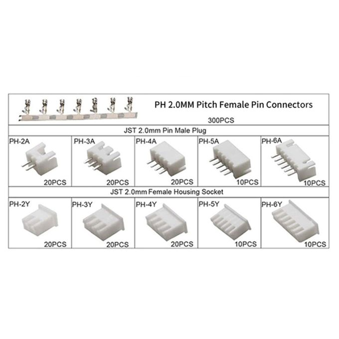 CONNETTORE JST KIT 460PZ PH PASSO 2mm DA 2 PIN A 6 PIN + CONTATTI