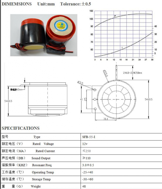 SIRENA PIEZOELETTRICA 12V110db 3000Hz A 12V