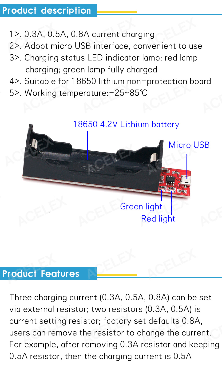 MODULO CARICABATTERIE 1X18650 4,2V 1A MICRO USB