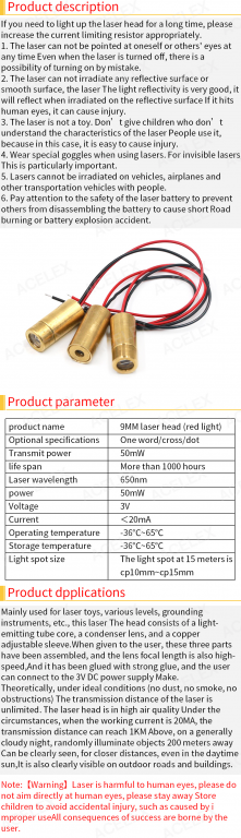 PUNTATORE LASER 650nm 9mm 3V 50mW PUNTO