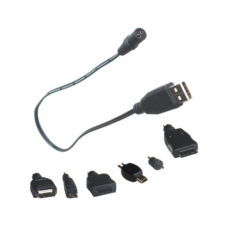Cavo USB + 6 Connettori per iPod, Mp3, Fotocamere digitali e Telefoni Cellulari In congiunzione con una qualsiasi uscita USB consente di alimentare le apparecchiature a 5Volt DC