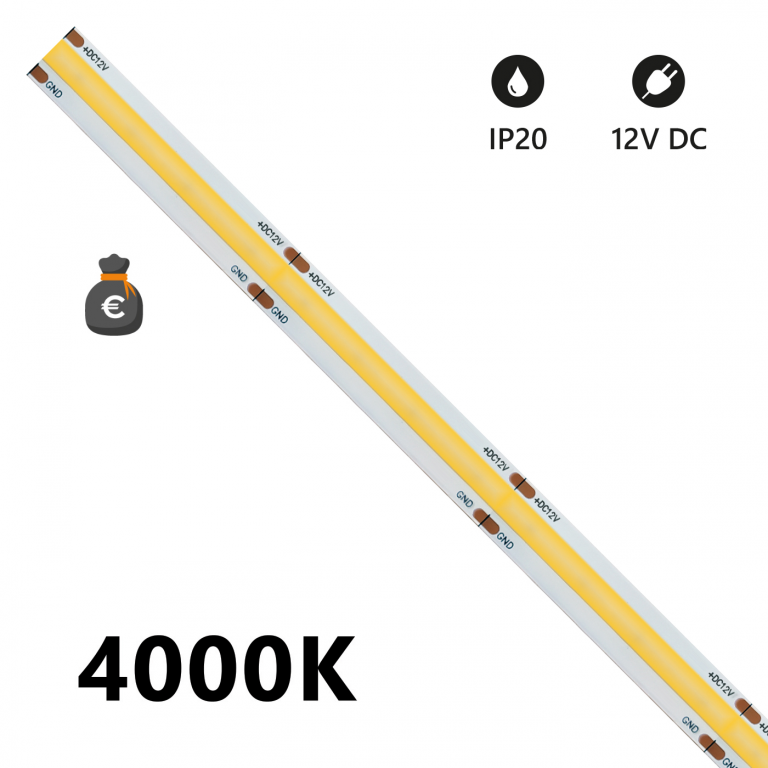 Striscia LED COB IP20 5m 4000K 12V 15W/m 1400lm/m