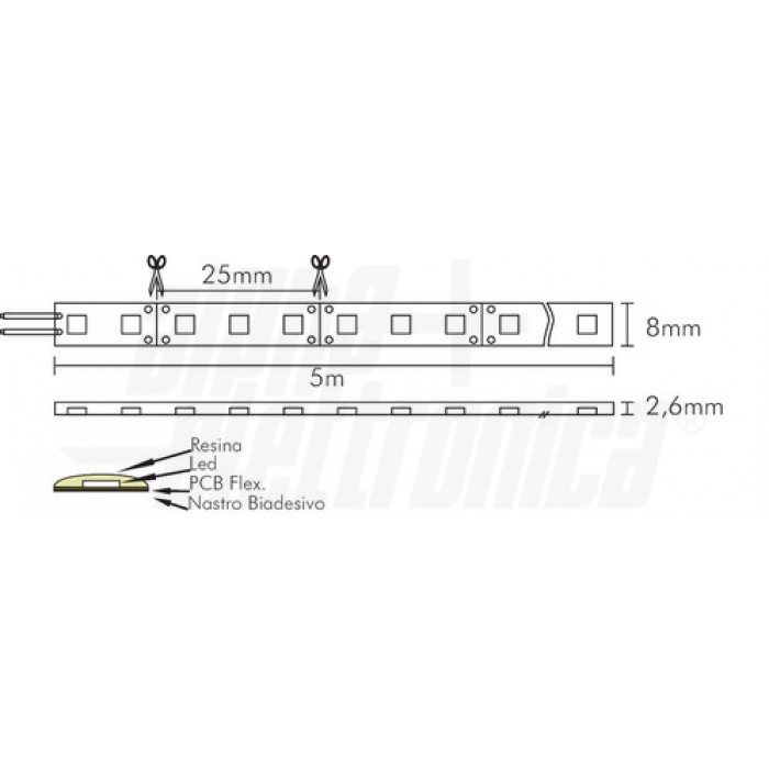 Striscia Led 120 Led/m 2835 0,2W - 12Vdc - 9,6W/m - Bianco naturale 4000K IP65 AL METRO