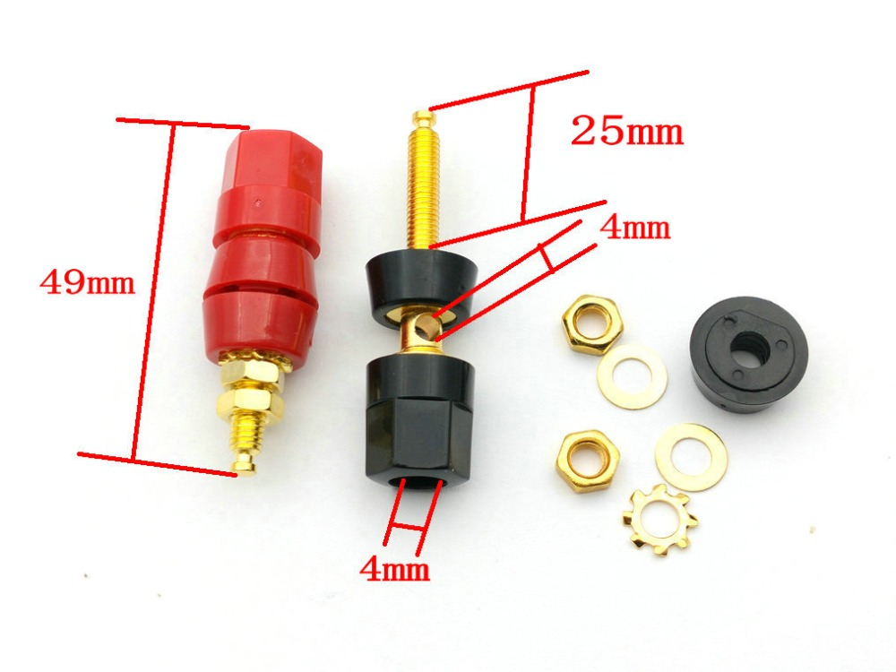 BOCCOLA 4mm DA PANNELLO PRESA BANANA DORATA NERA