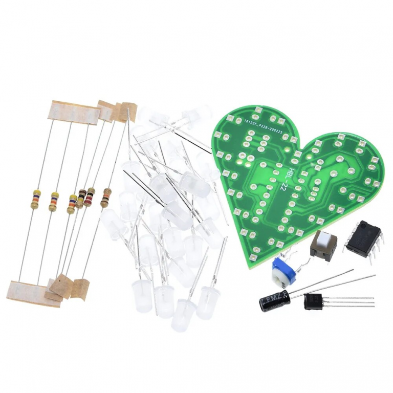 KIT MONTAGGIO DIDATTICO DIY CUORE BIANCO PULSANTE 4V-6VDC