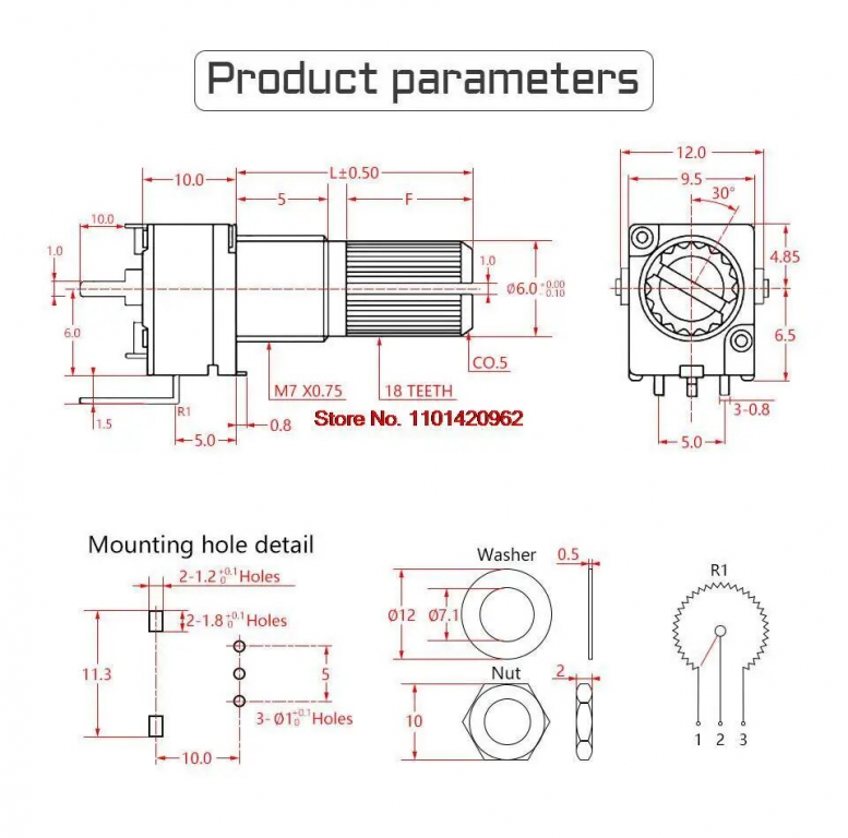 POTENNZIOMETRO BLINDATO LINEARE VERTICALE 500K OHM ALBERINO 15mm