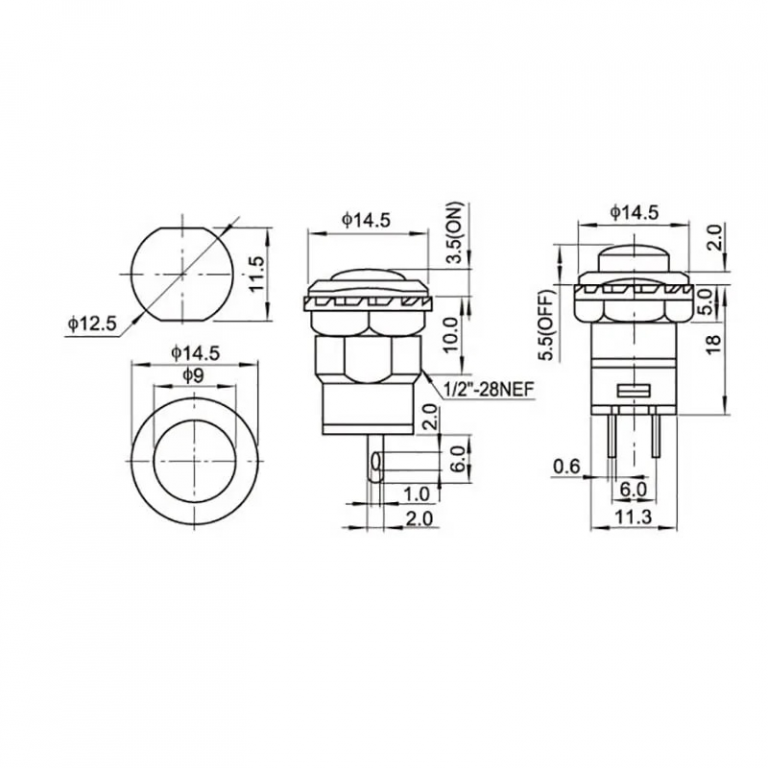 PULSANTE ROTONDO N.C. 12mm DA PANNELLO 3A 125VAC 1,5A 250VAC NERO