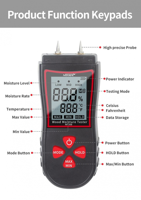 MISURATORE DI UMIDITA' DIGITALE PROFESSIONALE IGROMETRO PER LEGNO