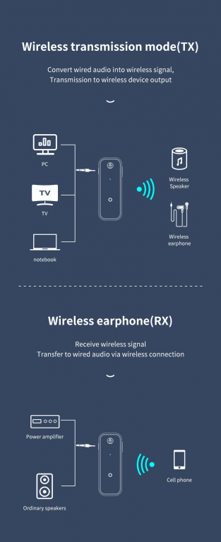 RICEVITORE TRASMETTITORE BLUETOOTH 5.0 RICARICABILE JACK 3,5