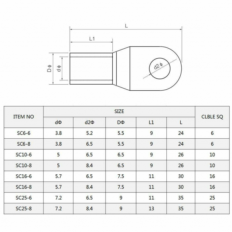 CAPICORDA OCCHIELLO DI POTENZA FORO 6,5mm CAVO 10mmq
