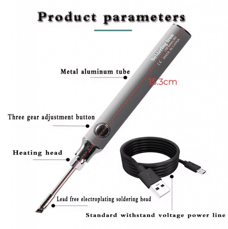 SALDATORE A STILO RICARICABILE GRIGIO USB TYPE-C 5V 8W