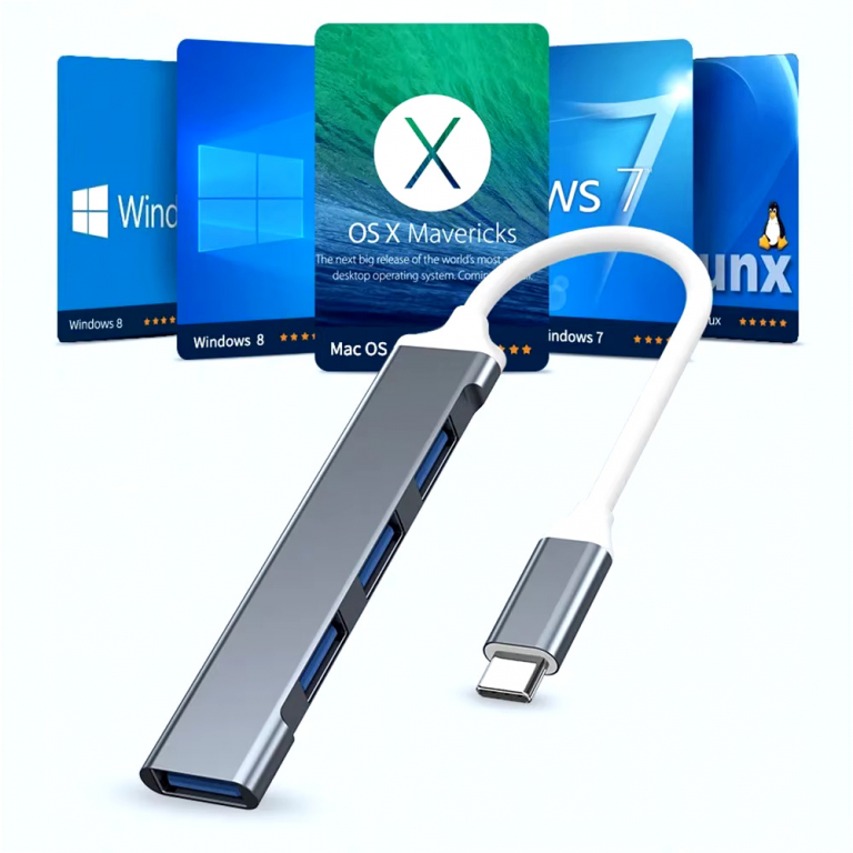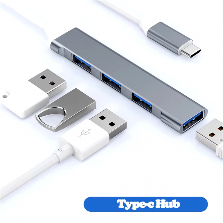 HUB SLIM COLORE METALLO ARGENTO CON PRESA USB TYPE-C CHE METTE A DISPOSIZIONE 4 PORTE USB/A 3.0 DIMENSIONI: 140X28X10mmPLUG&PLAY, UNIVERSALMENTE COMPATIBILE