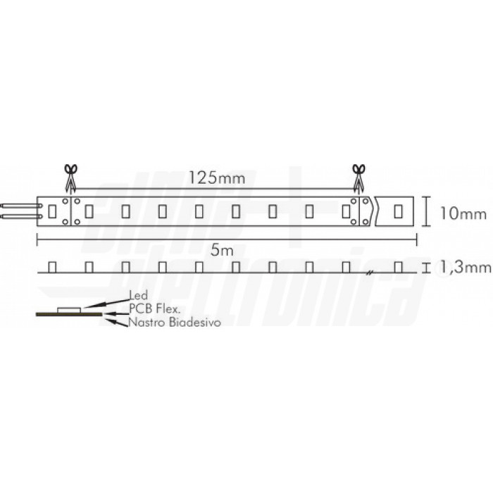 STRISCIA LED 5MT DA INTERNO IP20 24VDC 12W/m 1300lm/m 64LED/M 2835 4000K BIANCO NATURALE 10mm