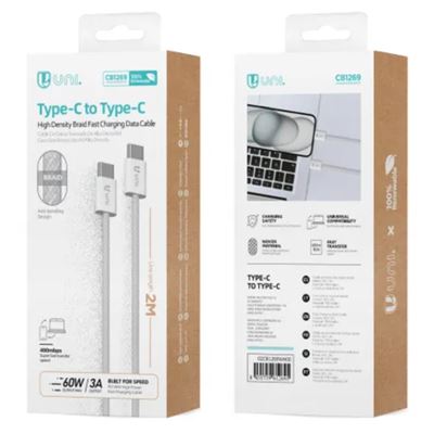 CAVO DA USB TYPE-C A USB TYPE-CTELATOCOLORE BIANCOLUNGHEZZA 2MTVELOCITA' DI TRASFERIMENTO 480mbpsCORRENTE MAX IN USCITA 60W / 3A