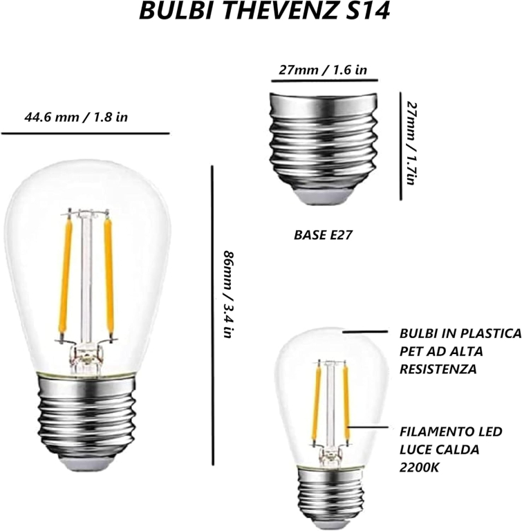 BOX 10 LAMPADINE A FILAMENTO LED E27 4000K 2W 220LN