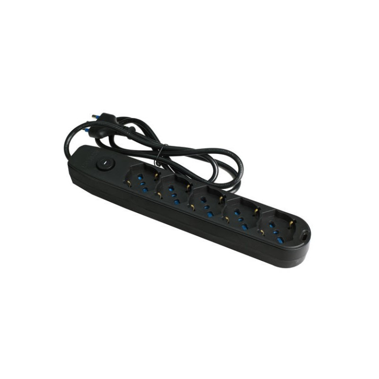 MULTIPRESA 5 POSIZIONI SCHUKO BIPASSO INTERRUTTORE SPINA 16A DRITTA CAVO 1,5MT 3500W NERA