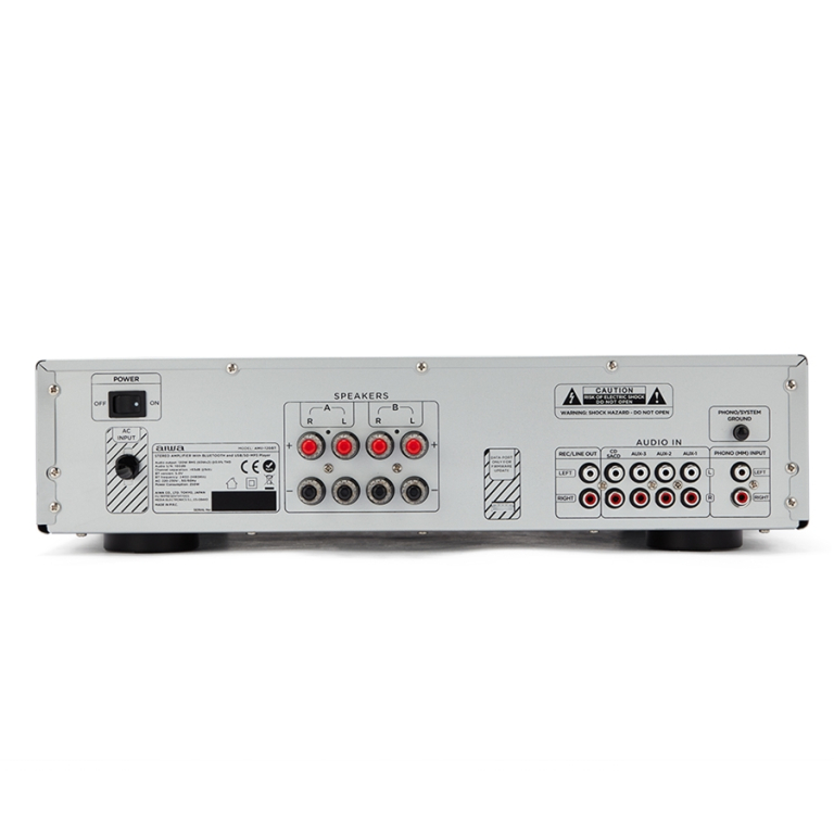 AIWA AMU-120BTSL è un versatile amplificatore Stereo multi-applicazione 60+60W di classe Hi-fi, dotato di porta USB, Slot SD Card per la lettura di file audio MP3, ricevitore Bluetooth, ingresso Phono per il collegamento di giradischi, e una completa dotazione di ingressi uscite analogici. Finitura Silver (Argento).