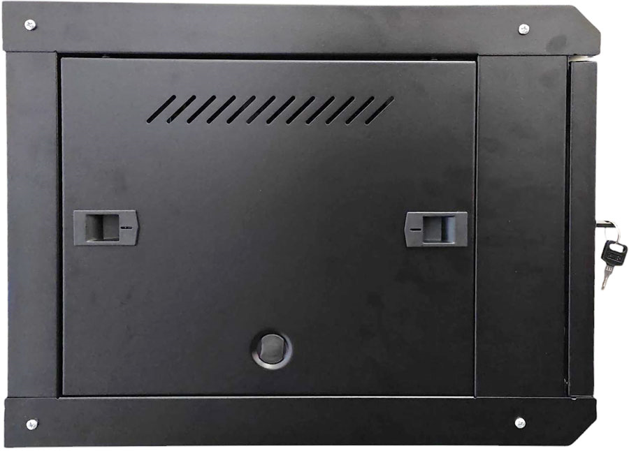 Armadio rack da parete da 6 unità (6U), ideale per l’alloggiamento ordinato e sicuro di dispositivi di rete, server, switch, router, DVR e apparati IT. Design compatto, robusto e ventilato, con porta frontale in vetro temperato e chiusura con chiave.