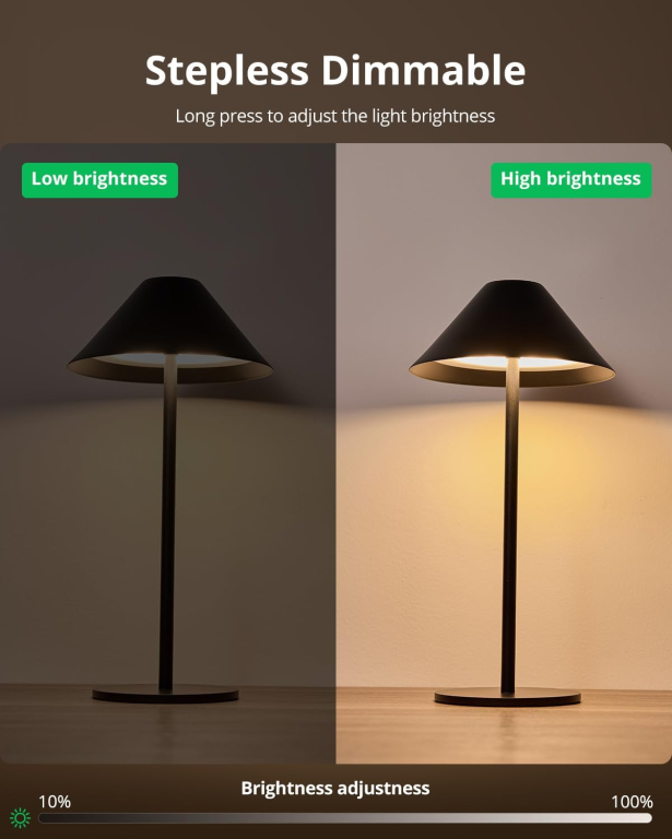 LAMPADA LED DA TAVOLO A BATTERIA IN METALLO 3000K/4000K/6500K TOUCH DIMMERABILE VARI COLORI